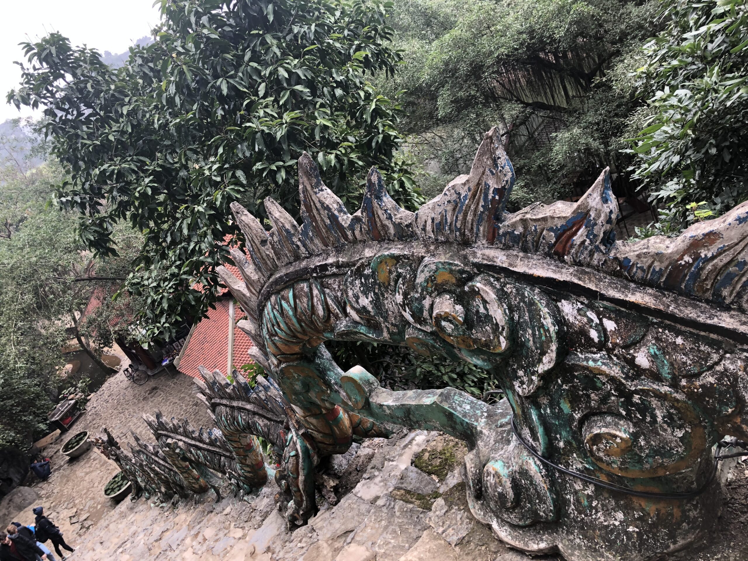 אחוזי ריח קטורת המשכנו להאנג מואה שהוא הר גבוה שצופה לנופים מרהיבים ובראשו הובטח לנו דרקון. 500 מדרגות הפרידו ביננו לבין הדרקון ואופיר ספרה אותן אחת אחת. הטיפוס השתלם. גם אימון מדרגות לא רע וגם נופים מהממים ולבסוף הדרקון הענק מאבן שאכן נח לו על פיסגת ההר לכל אורכה. הווייטנאמים מאמינים שהדרקון הוא סמל לשפע, שגשוג וכוח שהוא מייצג את השליט ובכלל שהם צאצאי הכלאה בין דרקון לאלה. אנחנו בכל אופן היינו שיכורי אדרנלין מהטיפוס וישר התאהבנו בדרקון, והצטלמנו בכל זוית אפשרית עד שנהיינו רעבים. לאופיר ולניב נמאס לגמרי מאוכל וייטנאמי אז אכלנו פיצה והמבורגר ולקינוח פיצה נוטלה ושוקו קינמון במסעדה שנקראת צ׳וקי ומזכירה את הגן של אורי בשנת 1984 (רק נתנייתים זוכרים) גם בטעם וגם בריח המדורה שבוערת לה באמצע הגן. וככה סיימנו את נין בין עם טעם של פיצה נוטלה בפה ודרקון גדול בלב.